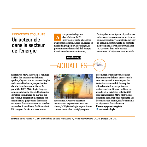 L'actualité MPQ Métrologie :
